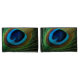 Experience the breathtaking beauty of nature with this stunning macro photograph of a peacock feather. This close-up view reveals the intricate details and vibrant, iridescent colors of the iconic "eye" pattern. Deep sapphire blue and electric turquoise swirl at the center, framed by a radiant halo of metallic bronze and shimmering emerald green. The delicate, thread-like texture of the feather's structure adds to the overall sense of elegance and natural wonder, making it a captivating piece of art.