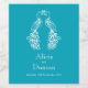 Personalise these Wedding paper wine bottle labels with your own brides and grooms name and wedding or wedding party or event date. Simple stylish label embellished with cute birds peafowl/ peacock / peahen couple white line art graphic drawing. Background colour is currently teal or you can change to your own colour choice if you wish. Fashionable modern chic wedding design part of the peacock romantic wedding stationary set. © Original drawing and design by Sarah Trett. www.sarahtrett.com for www.mylittleeden.com
