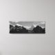 A black and white photograph of a section of the Tatoosh Range, in Mount Rainier National Park, with groups of clouds floating behind it. The sun's position is behind the mountains, it highlights sections of clouds and keeps the mountain range in the shade. Summer snow patches still cling to the exposed stone of the mountains. Image Copyright ©2023 Kimberly J Tilley. zazzle.com/store/developingnature