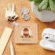 Keychain with an illustrated design of a smiling peanut butter jar that is standing between two piles of peanuts. The words “Peanut Butter? Peanut Better!” show above and below the cartoon character. All of the words can be customised.