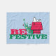 Enjoy this Peanuts holiday design featuring Snoopy sleeping on his dog house beside his Christmas tree.
