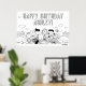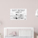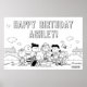 Celebrate in classic Peanuts style with this fun and customisable birthday colouring poster featuring Charlie Brown, Snoopy, Woodstock, Lucy, Linus, Sally, Peppermint Patty, and friends all gathered together in a cheerful outdoor scene. The bold "Happy Birthday" message can be personalised with any name, making it a special party decoration. Perfect as an interactive birthday activity, kids can enjoy colouring in their favourite Peanuts characters while celebrating.
