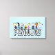 Check out this lineup of the Peanuts gang together, featuring Schroeder and Lucy, Linus with his blanket, Charlie Brown and his sister Sally, Pigpen, Franklin watching Snoopy dance, and Woodstock flying overhead.