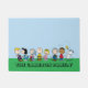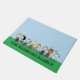 Check out this lineup of the Peanuts gang together, featuring Schroeder and Lucy, Linus with his blanket, Charlie Brown and his sister Sally, Pigpen, Franklin watching Snoopy dance, and Woodstock flying overhead.