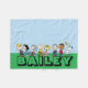 Check out this lineup of the Peanuts gang together, featuring Schroeder and Lucy, Linus with his blanket, Charlie Brown and his sister Sally, Pigpen, Franklin watching Snoopy dance, and Woodstock flying overhead.