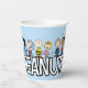 Check out this lineup of the Peanuts gang together, featuring Schroeder and Lucy, Linus with his blanket, Charlie Brown and his sister Sally, Pigpen, Franklin watching Snoopy dance, and Woodstock flying overhead.