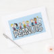 Check out this lineup of the Peanuts gang together, featuring Schroeder and Lucy, Linus with his blanket, Charlie Brown and his sister Sally, Pigpen, Franklin watching Snoopy dance, and Woodstock flying overhead.