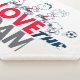 Check out Charlie Brown, Franklin, Peppermint Patty, and Snoopy running and playing soccer together in uniform, over the words: "Love The Game".