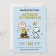 Celebrate your little one turning two with this absolutely charming Peanuts birthday invitation! The design features an iconic illustration of Charlie Brown and Snoopy happily dancing, with Woodstock floating above, set against a cheerful light blue background. The headline "GOOD GRIEF, LET'S PARTY!!" sets a fun, classic, and memorable tone. This card is fully customisable to include your child's name, party details and RSVP information for an unforgettable second birthday!