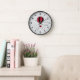The size of the clock is dramatic and the abstract alcohol ink design is soothing and intricate at the same time. I chose the black frame that adds pop to the blue and gold design. The gold printing would be better in a slightly darker or larger font. I love it and I’m looking for just the right place in ny new apartment. I would recommend this clock for a personal gift or a present. I feel that the quality is excellent for the money! I’m a bit of a clock nut so I’m pretty particular about my purchases. The clock is larger in diameter than many if the clocks I have, so it stands out very well. I think a slightly darker printing color and a moderately larger size would best suit a professional decor or add more impact in a work place item.
