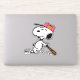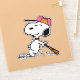Snoopy, the beloved beagle from the Peanuts comic strip, is often depicted playing baseball with his feathered friend Woodstock and the rest of the Peanuts gang. Here he is featured while at bat.