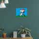 Snoopy, the beloved beagle from the Peanuts comic strip, is often depicted playing baseball with his feathered friend Woodstock and the rest of the Peanuts gang. Here he is featured while at bat.