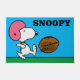 This design features Snoopy, Charlie Brown's beloved beagle, attempting to kick the football himself.