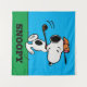 Snoopy, the beloved beagle from the Peanuts comic strip, is depicted in this design swinging a golf club.