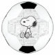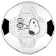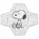 This Peanuts artwork features Snoopy sitting on background of black and white Charles M. Schulz comic strips.
