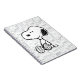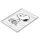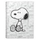 This Peanuts artwork features Snoopy sitting on background of black and white Charles M. Schulz comic strips.