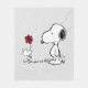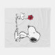 Snuggle up in sweet friendship and cozy warmth with this adorable white fleece blanket, featuring Snoopy and Woodstock! This soft and warm blanket showcases a classic line-art illustration of Snoopy looking on as Woodstock, holding a vibrant red flower, stands before him. The simple yet heartwarming scene perfectly captures their enduring bond and gentle nature, all against a crisp white background. This iconic design brings a sense of nostalgic warmth and timeless appeal. Perfect for snuggling on the couch, bed, or as a thoughtful gift, this blanket is a must-have for any Peanuts fan!