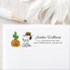 Spike, with his signature droopy moustache and thin frame, wears a slightly worn-out hat that adds to his desert-dweller charm. The jack-o'-lantern has a crooked smile, with uneven teeth and triangle-shaped eyes, looking mischievously spooky. The cactus stands tall behind the pumpkin, adding a bit of that desert flair to the scene, almost like it's a part of the Halloween celebration itself.