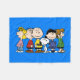 This design features Charles M. Schulz's popular comic strip gang from the loveable Peanuts series.