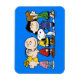 This design features Charles M. Schulz's popular comic strip gang from the loveable Peanuts series.