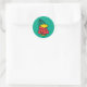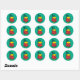 This vibrant, circular Peanuts sticker is set against a bold teal or aqua green background. The central image is of Woodstock, the little yellow bird, completely bundled up for cold weather. He is wearing a bright red puffy coat (or puffer jacket) and a coordinating striped winter beanie in teal and a darker colour. This officially licensed sticker is a cute and colourful piece of seasonal merchandise, perfect for fans who love the Peanuts characters, winter themes, or adding a charming accent to gifts and belongings.