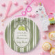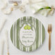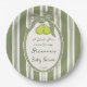 Pear sage green retro stripes baby shower custom paper plate