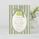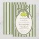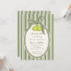 Pear sage green retro stripes baby shower invitation cards template, retro oval frame hand drawn preppy bow pear baby shower invitation cards, hand written whimsical baby shower cards, pear baby shower party supplies