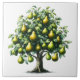 A ceramic tile features a charming illustration of a pear tree, with lush green leaves and ripe, golden pears hanging from the branches. The design captures the tree's natural elegance, bringing a touch of orchard serenity to any setting.
