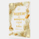 Delicate gold seashell illustrations and flowing botanical textures frame the design with graceful movement, evoking the beauty of ocean tides and sunlit shores. Set against a luminous acrylic backdrop, the pearl-inspired tones and metallic gold detailing catch natural light beautifully, creating a soft glow that enhances ceremony entrances, reception foyers, and photo-worthy wedding moments.