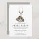 A set of Pearl Party invitations for your next pearl hunt party. These invitations feature simple charcoal grey text, along with a unique oyster and white wine illustration centred towards the top. On the reverse side of the invitation is a deep yet soft grey colour. All elements of this invitation are adjustable by using the customise function. Have fun adding your own details and making it your own.
