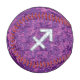 A mother of pearl Sagittarius zodiac symbol on a vibrant fuchsia pink digital camouflage design print background. A modern urban racy design for a great custom birthday gift idea.