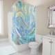 Pearlescent Aqua & Gold Liquid Marble Shower Curtain