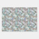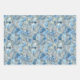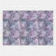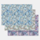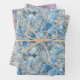 This elegant trio of wrapping paper designs features a stunning blend of pearlescent florals and abstract marbled swirls, all rendered in a soothing palette of cool pastels. The top sheet showcases delicate, ruffled petals that shimmer with an opalescent sheen—each flower unfolding in hues of powder blue, icy lavender, and soft cream, reminiscent of silk or mother-of-pearl.