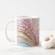 A very pretty and unique design with pearls and shells painted with pearlescent paint in a colour palette of pink, blue, white and gold. Personalise with a name.