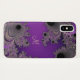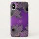 Pearlescent Purple Fractal Monogram iPhone X Case. Violet purple and black, mixed with silver, gold and lavender, Mandelbrot fractal design case. Fill in your initial at the prompt to personalise and customise anyway you like.