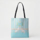 Pearls and Lace Aqua Stripes Cream Bow With Name Tote Bag