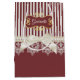 Pearls and Lace Deep Red Stripes Bow and Name Medium Gift Bag