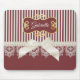 A vintage Victorian style mousepad featuring deep red and creamy white coloured vertical stripes embellished with an image of a cream coloured ribbon tied into a sweet bow affixed to a string of elegant pearls. Personalise this elegant design by adding your name to the ornate gold edged frame. NOTE: This is a flat printed image. The bow, lace, pearls, and gold frame are NOT real.