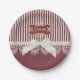 Pearls and Lace Deep Red Stripes Bow and Name Paper Plate