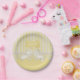 Pearls and Lace Gold Stripes Ivory Bow With Name Paper Plate