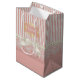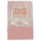 Pearls and Lace Pink Stripes Cream Bow and Name Medium Gift Bag