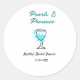 Pearls and prosecco bridal shower blue black name classic round sticker
