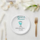 Pearls and prosecco bridal shower blue black name paper plate
