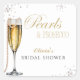 Celebrate the bride-to-be with this elegant boho bridal shower invitation. Featuring minimalist modern design with soft white pearls and a touch of Prosecco glam, it's perfect for a chic and stylish wedding shower. Customise easily for your event details. Ideal for bohemian, modern, or pearls and prosecco-themed celebrations.