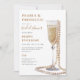 An elegant chic celebratory bridal shower invitation, featuring watercolor Prosecco champagne and pearls. The type is a mix of modern trendy script and a classic vintage serif font with champagne and black coloured typography.