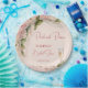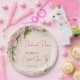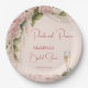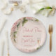Pearls and prosecco bridal shower blush pink coral elegant monogram printed paper plates template soft blush pink roses and pearl garlands glass of wine pearl themed party personalised tableware table decor