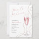 This chic glam invitation features elegant pink elements with watercolor details, perfect for a modern bridal brunch or brunch and bubbly celebration. The champagne glass design and handwritten calligraphy script add a sophisticated touch. Customise it with your event's details to create a stylish and memorable invitation.
