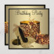 Elegant black and gold glitter high heel shoes womans any number leopard birthday party invitations. This elegant gold leopard high heel shoe black and gold womans birthday party invitation is easily customised for your party or event by adding your details to the front and back by adding your event details, font style, font size & colour, and wording.