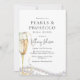 This is a modern and elegant pearls and prosecco bridal shower invitation to celebrate the bride-to-be! Using a design of luminous white pearls and a flute of prosecco, easily edit the text as required using the provided template and celebrate the bride’s upcoming nuptials in elegant style.