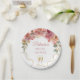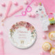 Round off your table decor with this romantic and chic paper plate featuring blush pink florals, pearls, champagne motif and gold accents — ideal for a bridal shower or brunch with timeless style.